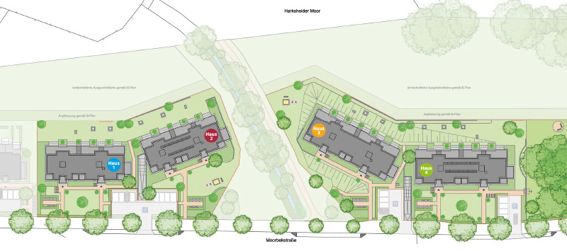 Neubau von 4 Häusern mit 58 Eigentums- und Mietwohnungen mit Tiefgarage